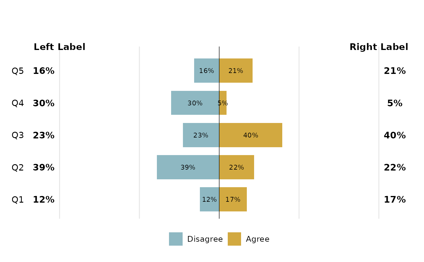 The function requires summary data in a long format, with a group column (i.e. question), response column (i.e. survey responses) and a percent column.